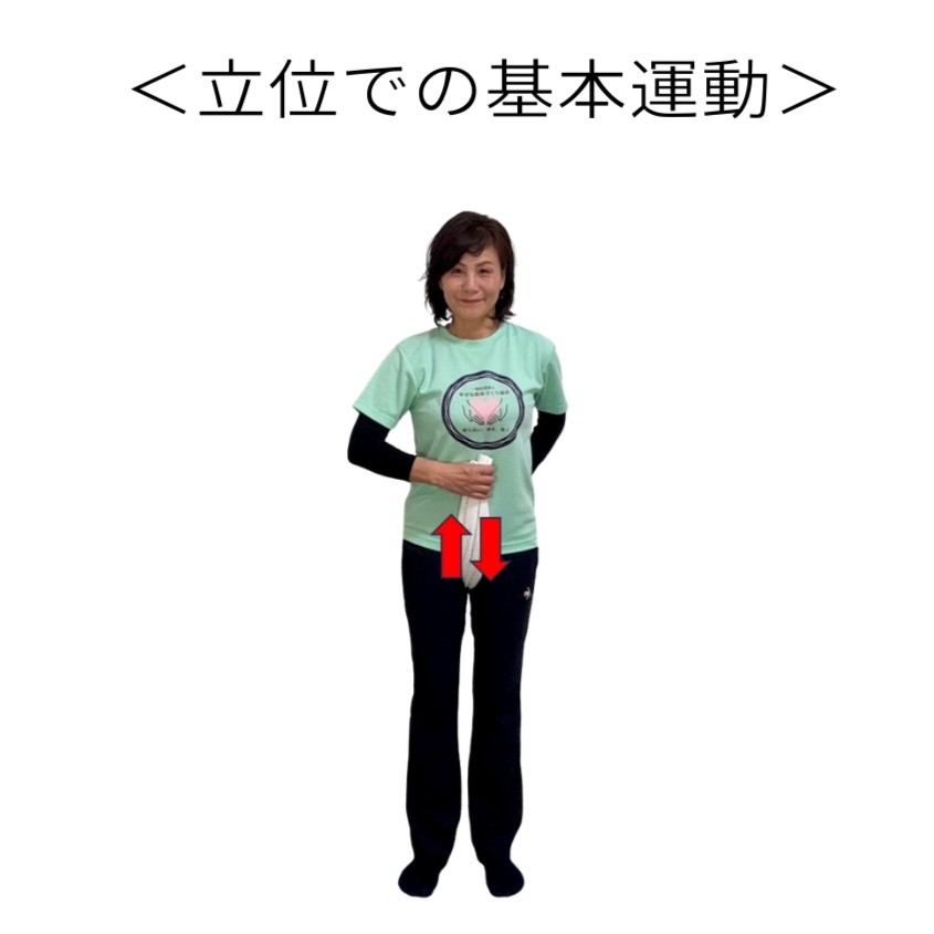 ●第2回で行った「基本の骨盤底筋運動」を立って行います。