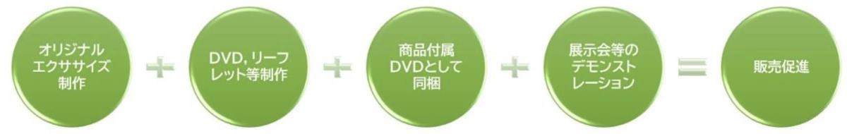 オプションとして、商品同梱用DVDやリーフレットを制作し、販売促進にご活用いただけます。展示会でのデモンストレーション等についてもご相談ください。