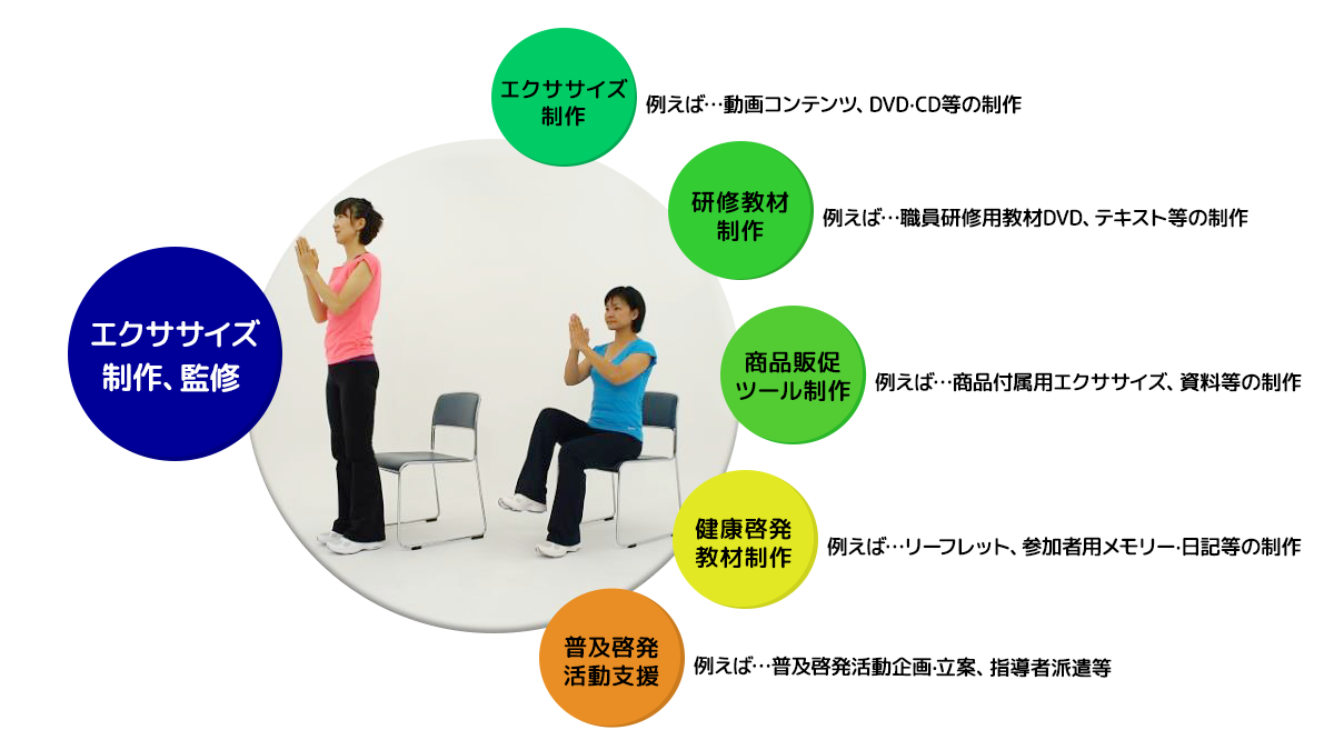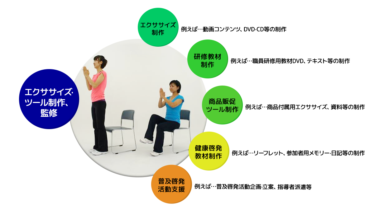 エクササイズ制作、商品販促ツール制作、普及啓発活動支援 |