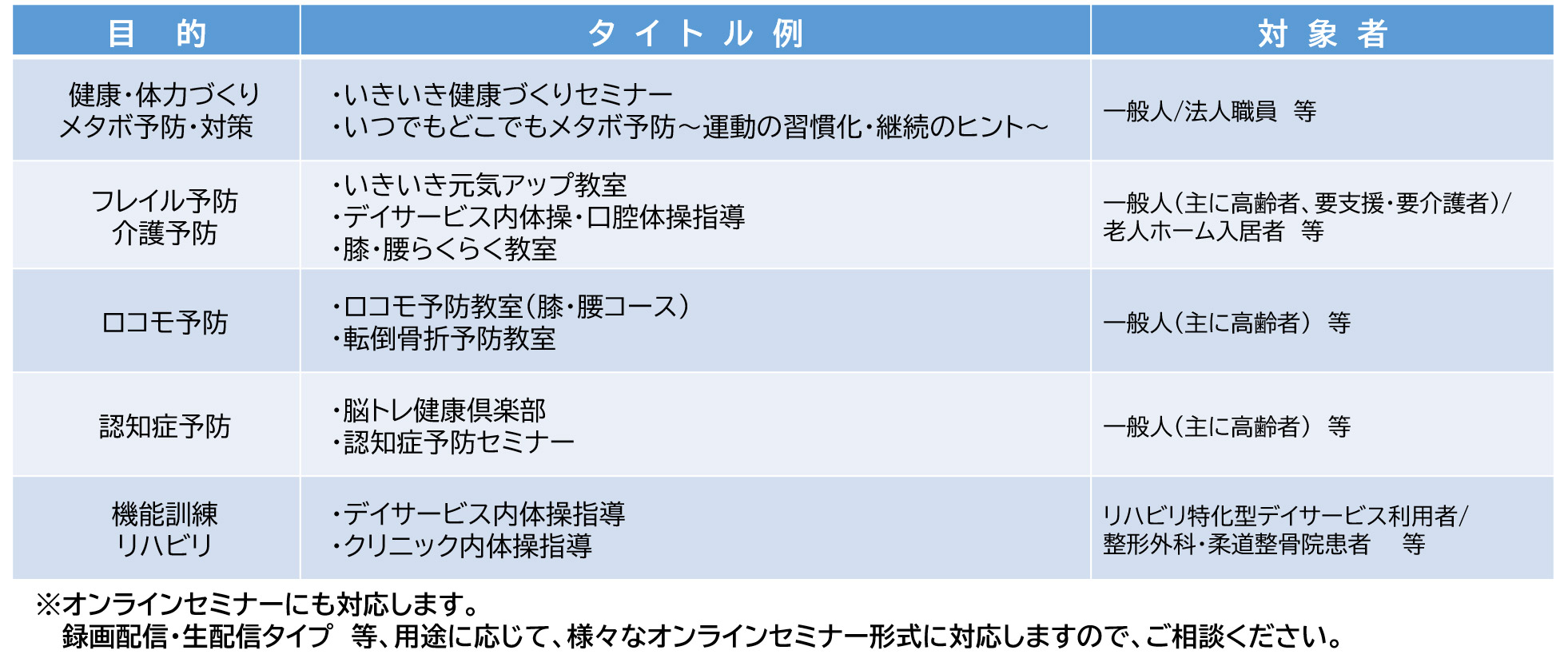 講座・タイトル例