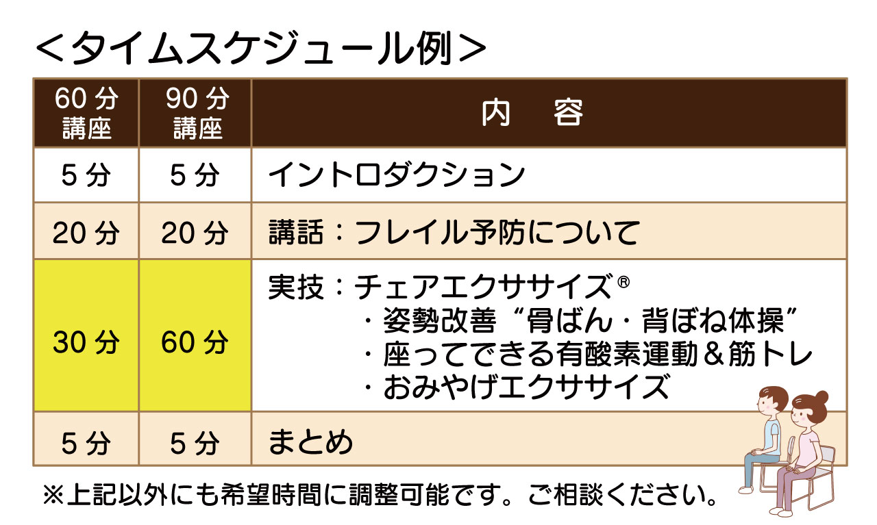60分または90分の講話とチェアエクササイズ® |