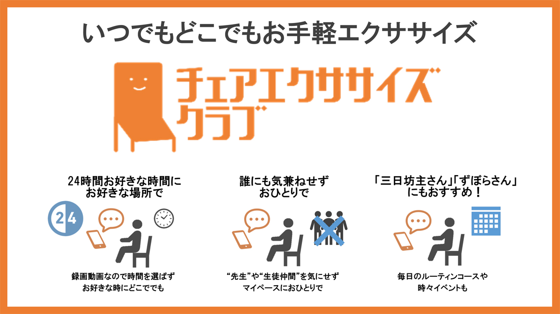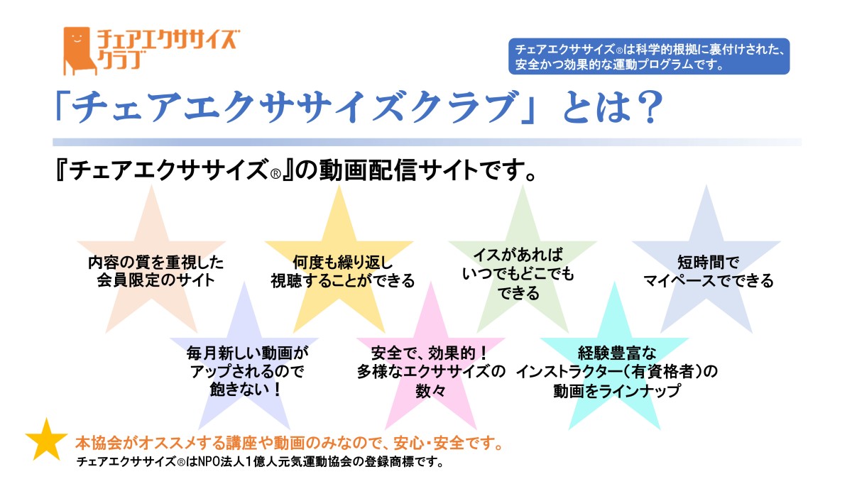 チェアエクササイズクラブは『チェアエクササイズ®』の動画配信サイトです。