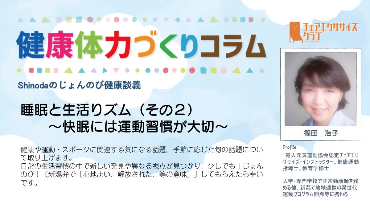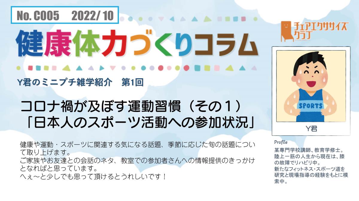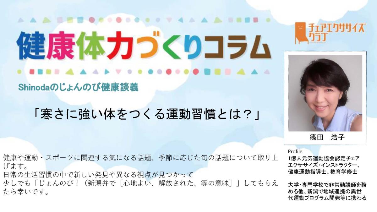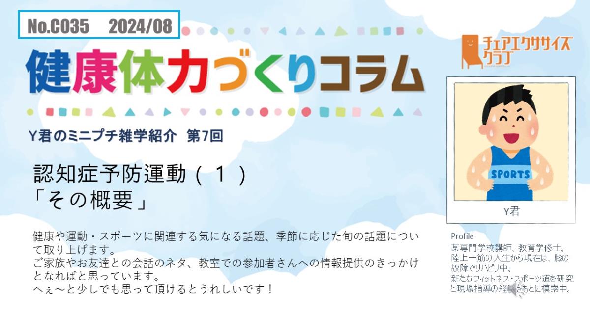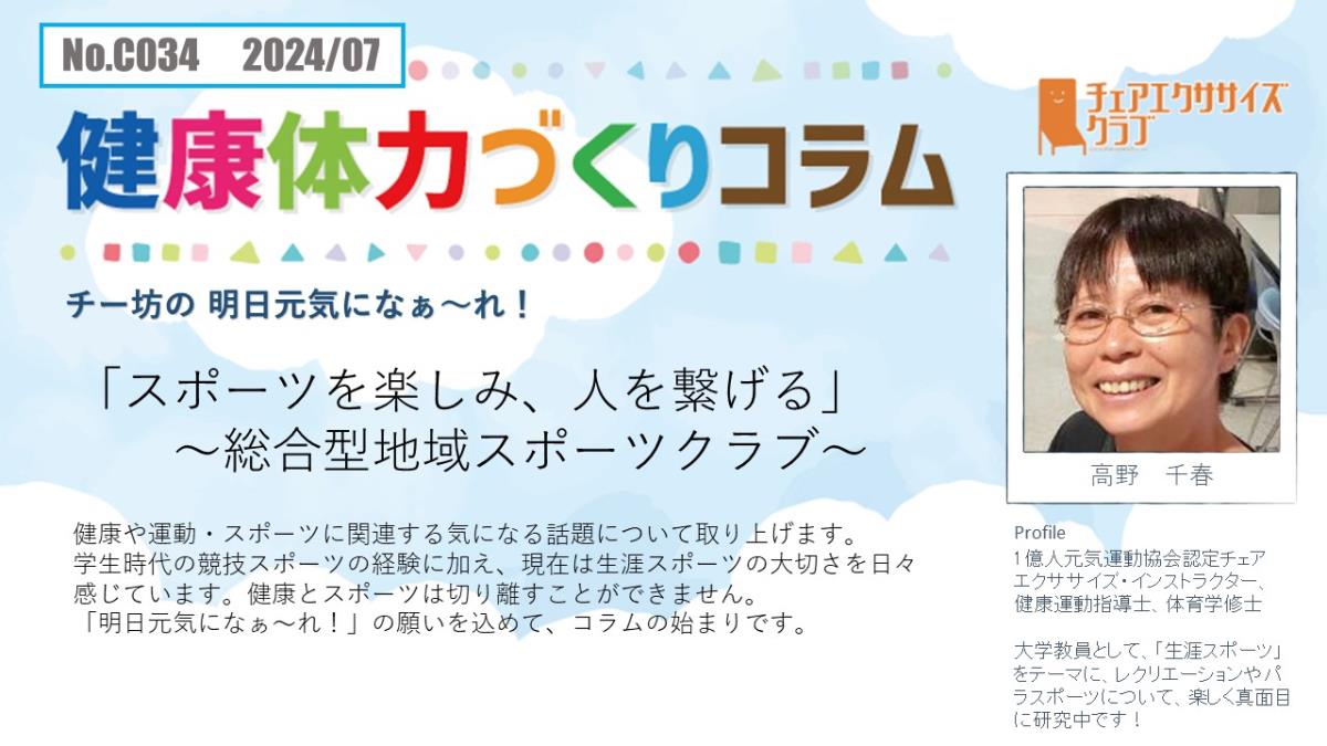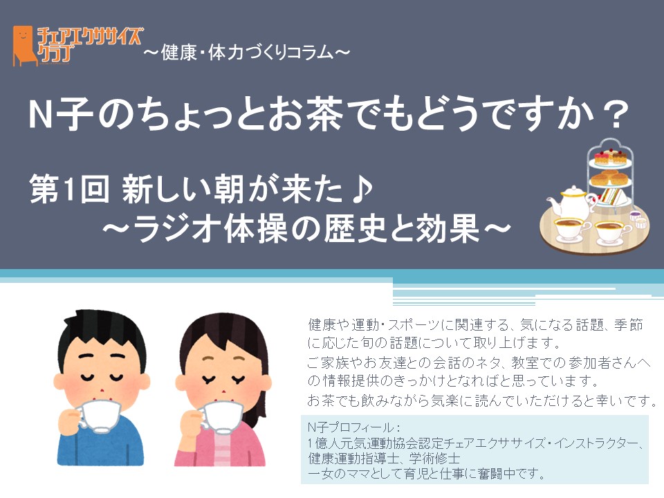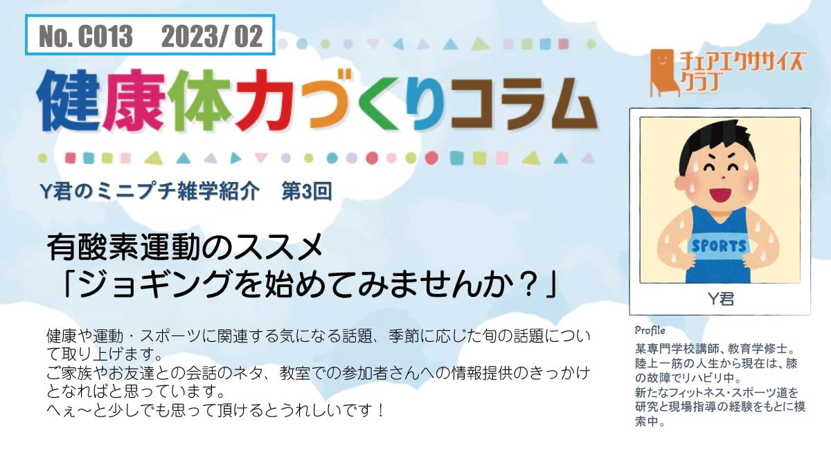 チェアエクササイズクラブでは、健康づくり、体力づくりに役立つ情報をコラムとして発信しています。各講師の専門分野から、様々なコラムを毎月1本ずつ「動画で観るコラム」とその資料をアップしています。