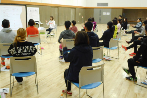 運動が健康づくりに必要であることは皆さんご存じなのですが、具体的にどう必要なのか?運動しなければどうなるのか?を簡単にご説明し、今日をきっかけにまずチェアエクササイズから運動習慣へとつながるようお話をしました。健康づくり、介護予防、認知症予防にも運動が不可欠であることを知っていただき、後半はチェアエクササイズを体験していただきました。ご自宅でお一人でも手軽に実践できるチェアエクササイズをご体験いただき、ご紹介した動きはイラストで配布しました。それぞれの動きで主に使っている関節や筋肉、日常生活動作にどのように反映するかを説明しながら進めました。特別な道具は必要なく、指導者がいなくてもできる運動ですので、ぜひ継続して実践していただきたいと思います。